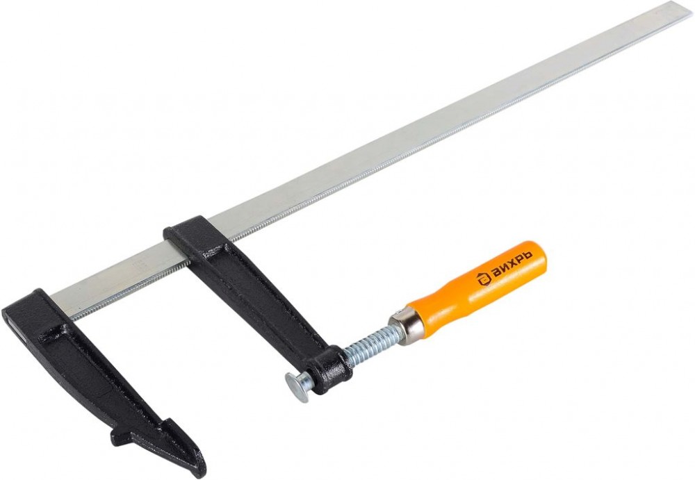 Струбцина Вихрь F-образная 500х120 мм – один из видов вспомогательных инструментов, используемый для фиксации каких-либо деталей в момент обработки или для плотного прижатия их друг к другу при сверлении, склеивании и т.п.
