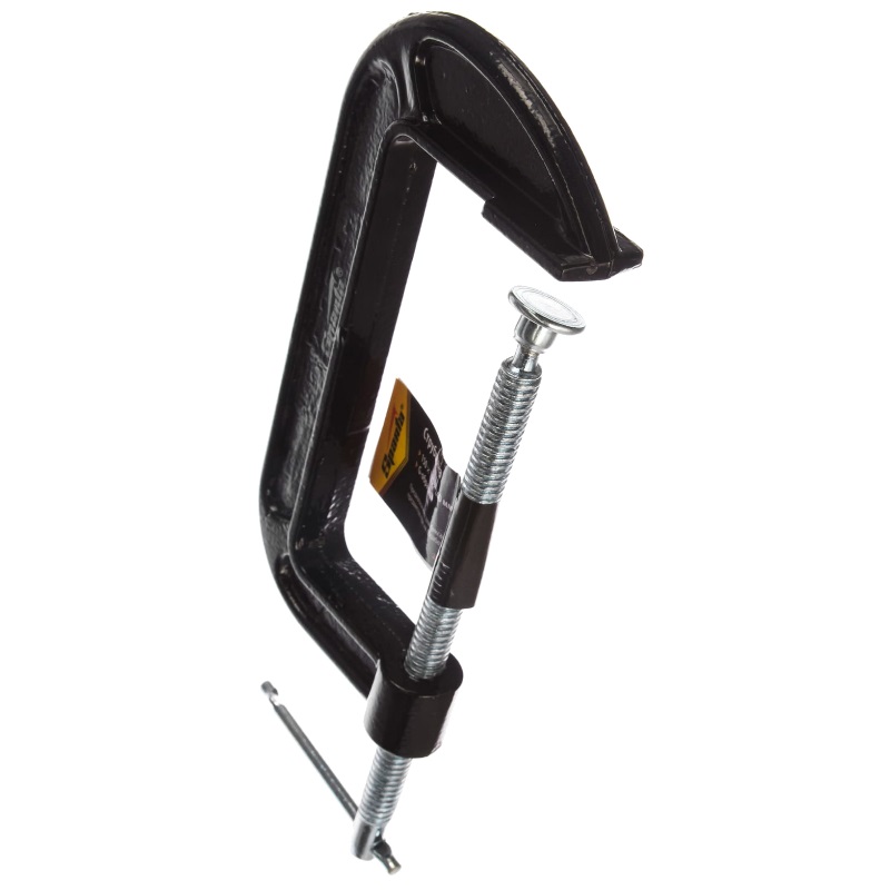 G-образная струбцина Sparta 206625 с шириной зажима 150 мм надежно фиксирует различные детали для склеивания, сверления, пиления, шлифования или сварки. Винт с воротком и крупной червячной резьбой позволяет зажимать детали плавно и со значительным усилием. Струбцина будет полезна домашним мастерам.
