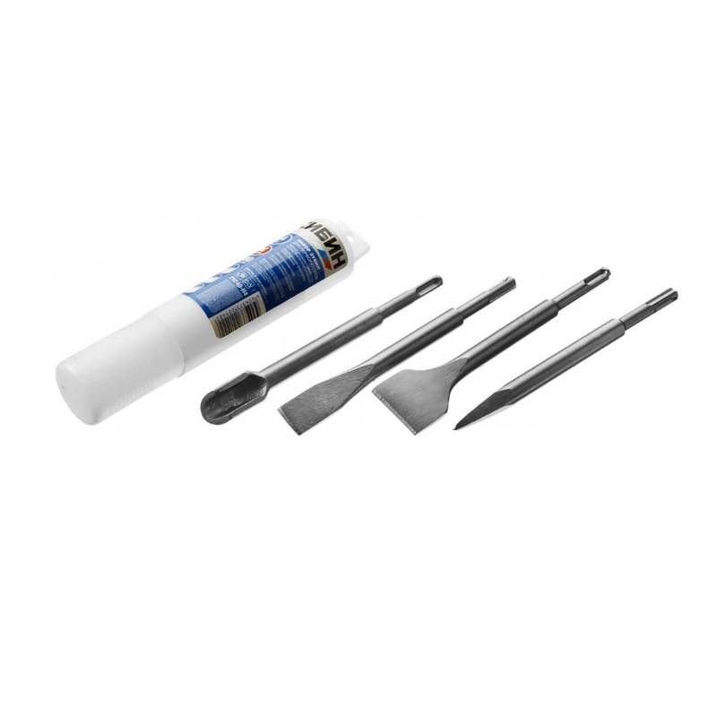 Набор СИБИН 29240-H4 используется в перфораторах с системой крепления SDS-plus. В наборе 4 зубила различной формы, что позволяет выполнять широкий спектр задач при проведении долбежных, демонтажных работ по кирпичной кладке, бетону и камню.