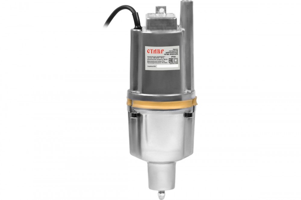 Погружной вибрационный насос Ставр ст300н25нпв перекачивает воду из колодцев, скважин, водоёмов. Способен осуществлять подачу воды на расстояние до 70 м.
