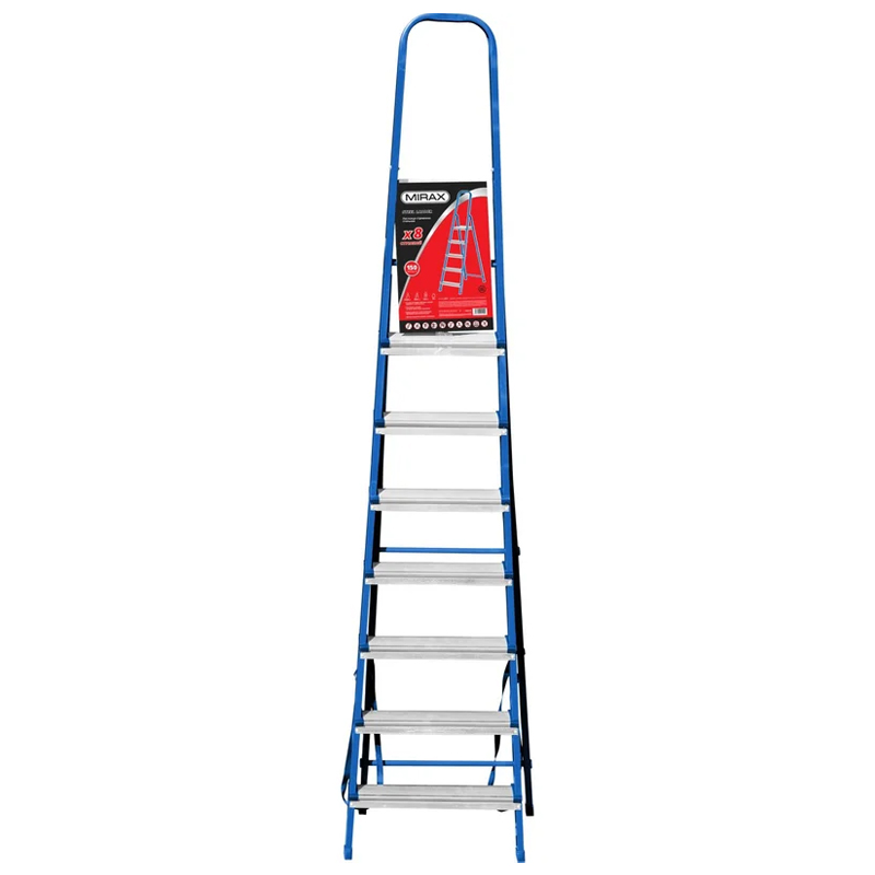Стальная лестница-стремянка MIRAX 8 ступеней, 162 см 38800-08 применяется на производстве и в быту.