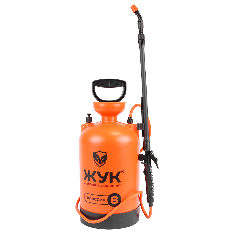 Опрыскиватель Жук ОП-207 8 л 4607156360444 применяется на садовом участке или в оранжерее для бережного полива растений или внесения жидких удобрений. Также может применяться для распыления чистящего средства при мытье стен, окон. Вместимость бака - 8 литров. Корпус изготовлен из качественного пластика, устойчивого к агрессивным веществам, содержащимся в удобрениях. Благодаря плечевым рукояткам опрыскивателем удобно пользоваться даже при обработке значительных территорий. Штанга телескопическая (ее длина регулируется от 650 до 970 мм).