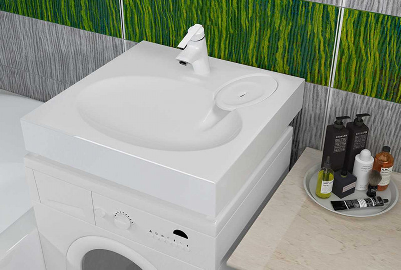 Умывальник комплектуется кронштейнами и подходит для установки над стиральной машиной глубиной до 47см.