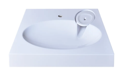Раковина для ванной комнаты, предназначенная для установки над стиральной машиной квадратной формы от бренда Marko из коллекции Мэй имеет по центру отверстие под смеситель, с правой стороны отверстие под слив закрытое сверху накладкой-мыльницей.