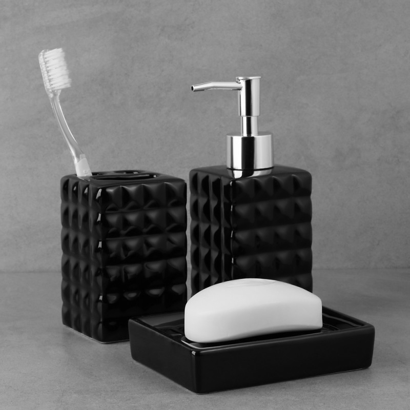 Стакан с разделителем для зубных щеток и пасты VETTA "Грани будущего" – это стильный аксессуар для ванной комнаты с тремя ячейками. Изделие выполнено из высококачественной керамики, имеет элегантный стильный дизайн, который будет выигрышно дополнять интерьер ванной. Подходит для щеток, зубных паст, расчесок, а также косметических аксессуаров. Имеет устойчивое основание, не скользит по поверхностям. Не требует специального ухода и легко моется. 2 цвета в ассортименте: белый и черный.