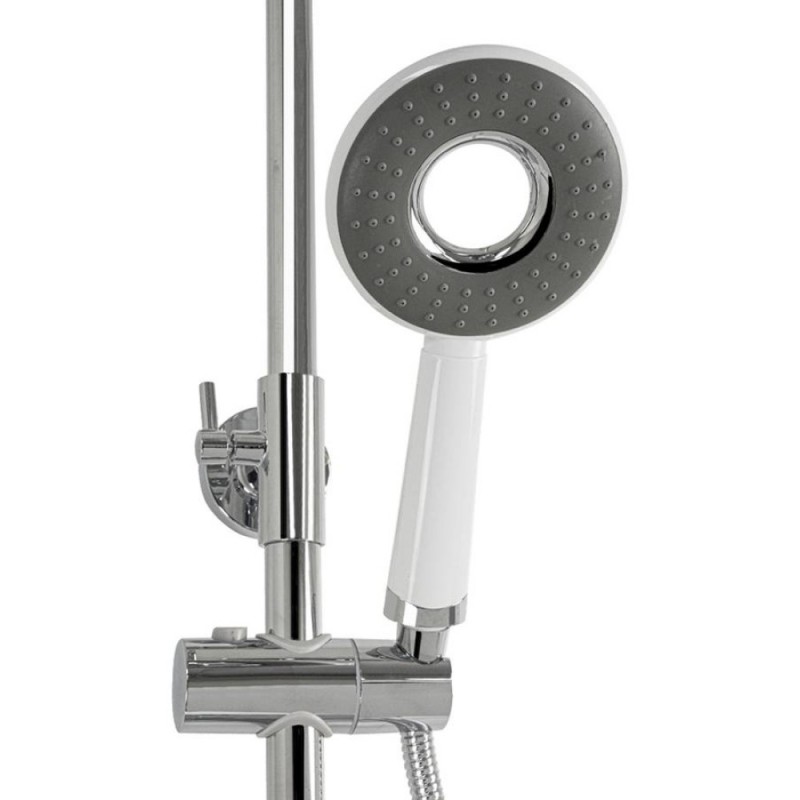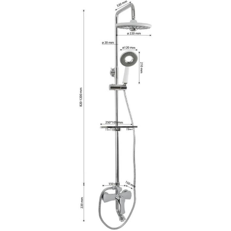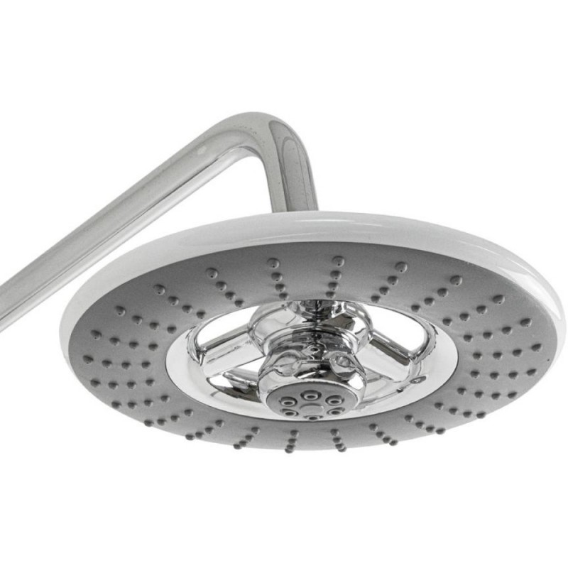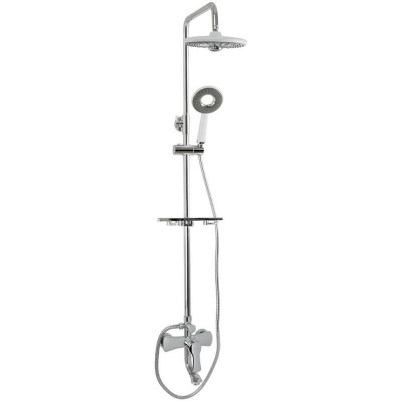 Смеситель + стойка душевая "тропический душ" с двумя лейками и полочкой в ванную, хромированные. В дизайне душевой стойки гармонично соединились строгие линии и мягкие переходы. Она отлично впишется в интерьер ванной комнаты в минималистском стиле. Глянцевое хромированное покрытие не стирается и сохраняет первозданный внешний вид в течение всего периода эксплуатации. Длительную работу без протечек обеспечивает смеситель с керамическим картриджем. Предусмотрен поворотный излив для наполнения ванны. Угол наклона верхнего душа можно регулировать в соответствии с потребностями каждого пользователя. Ручная лейка в форме кольца оснащена металлическим шлангом, который не перекручивается во время водных процедур. Смеситель шаровый с коротким поворотным изливом, душевым шлангом и лейкой и дивертор переключения в трёх положениях.