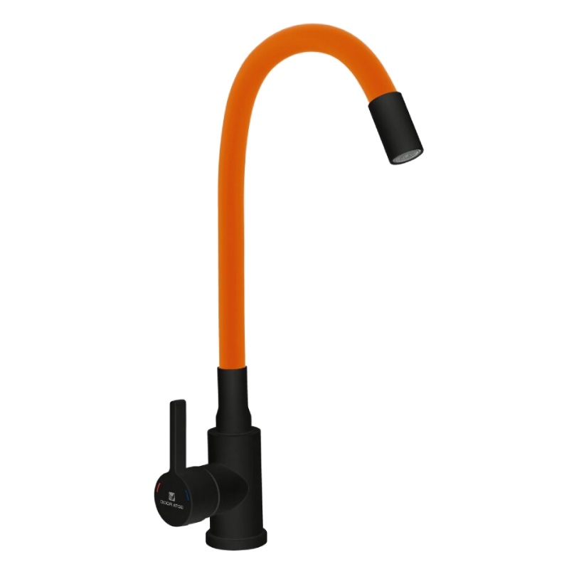 Смеситель д/кухни Black&White силиконовый излив, оранж Gota Rocio 016092 нержав.сталь DW7105-Z11 $