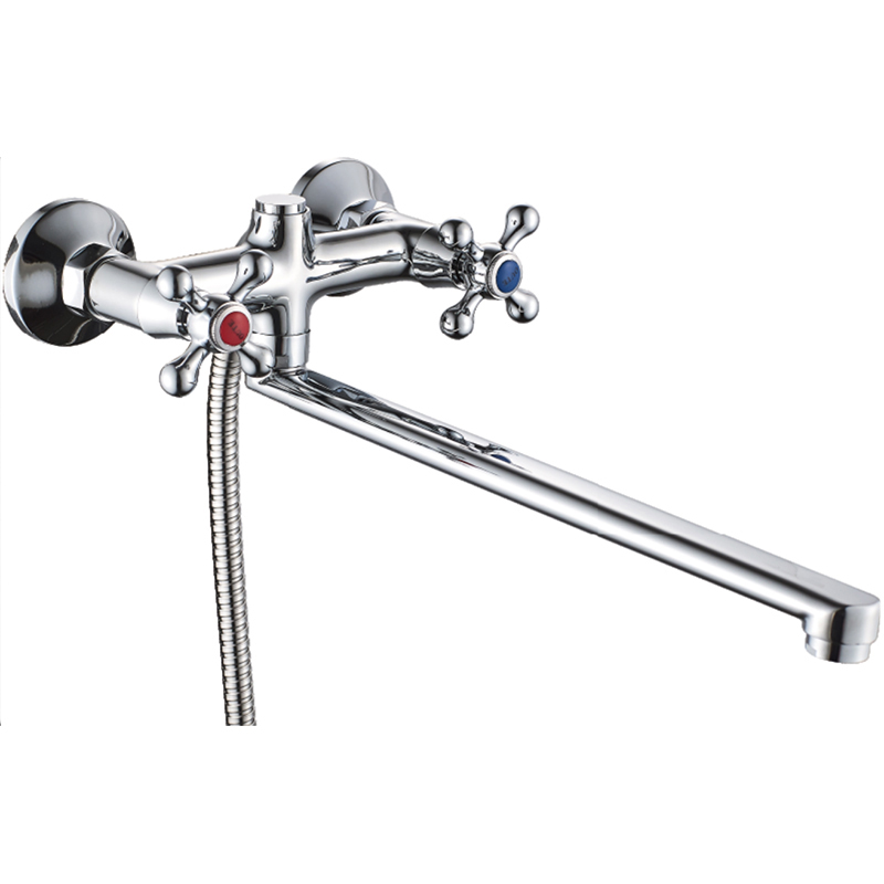 Смеситель для ванны OUTE T6323, классический вариант, обладающий двумя вентилями для горячей и холодной воды. Наличие аэратора в смесителях обеспечивает равномерный поток воды , а также ее относительноесмягчение. Специальная сетка отфильтровывает различные примеси. Настенные приборы – классический вариант, который в наши дни наиболее часто устанавливается в ванной. Помимо обычного излива модели оснащены выходом на душевой шланг и лейку. Современные приборы – объединение классического конструкционного решения и самого необычного и смелого оформления. Подобного рода сантехника идеально подходит тем, кто постоянно стремится шагать в ногу со временем. Материал данного прибора - латунь, надежный материалвысокого качества, который обеспечивает идеальное нанесение хромированного покрытия. Один из наиболее традиционных вариантов оформления. Круглая форма помогает прибору выглядеть максимально стильно и привлекательно для человеческих глаз.