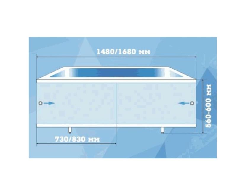 Экран под ванну серии Кварт торговой марки МетаКам изготовлен на новосибирском производстве СибПласт и представляет собой двухстворчатый экран с более усовершенствованным каркасом и ножками из алюминия по сравнению с другими моделями. Рама изготовлена из ПВХ профиля, дверцы из ячеистого пластика. Декоративное изображение на дверцах наносится с помощью самоклеющейся пленки. Размеры экрана по длине 1480 мм, высота 55-60.