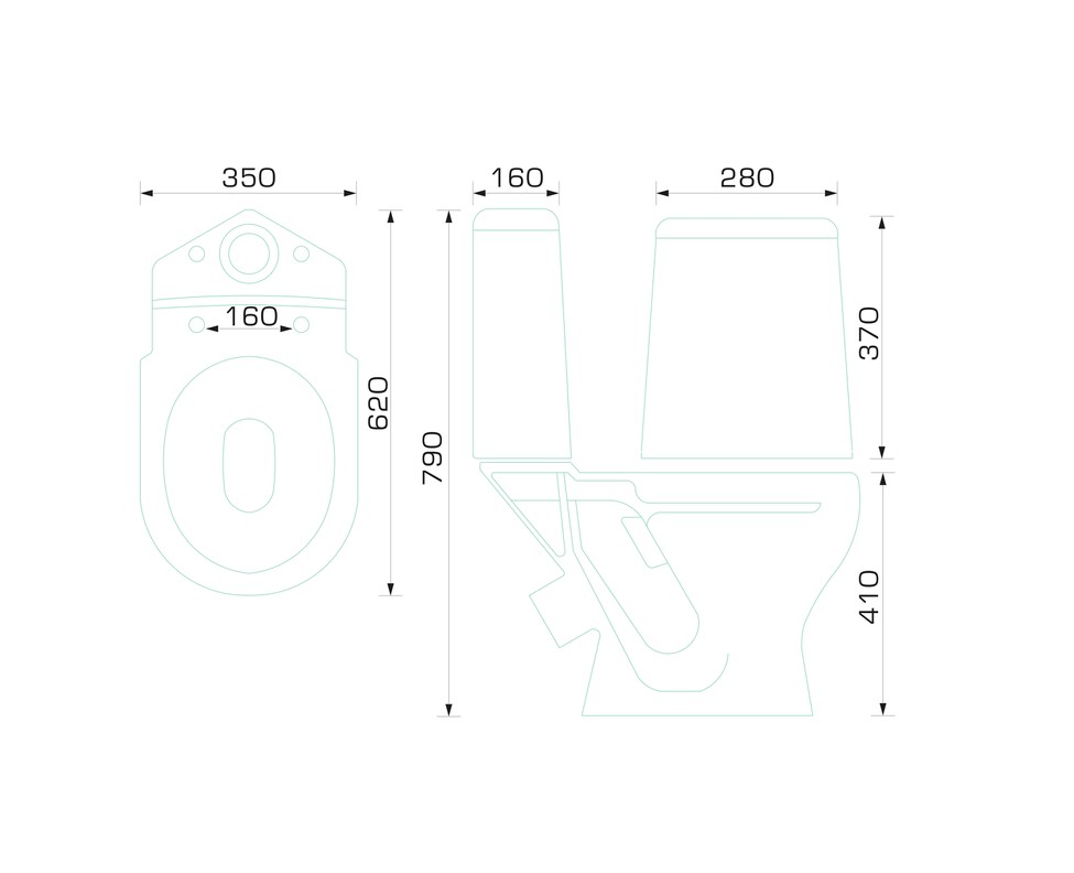 Имеет косой выпуск, расположенный под углом к поверхности пола, такая конфигурация уменьшает возможность засора. Оснащен ободком закрытого типа, что обеспечивает смыв с минимальным количеством брызг.