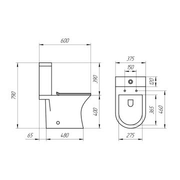 Унитаз-компакт, безободковый, сиденье тонкое ДП, удлин. патрубок, крепления, арматура, гориз. A2802