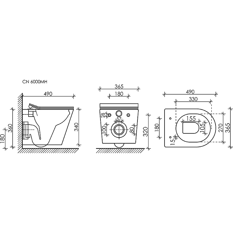 Унитаз подвесной Balearica Rimless (цвет Антрацит Матовый), глубокий смыв CN6000MH