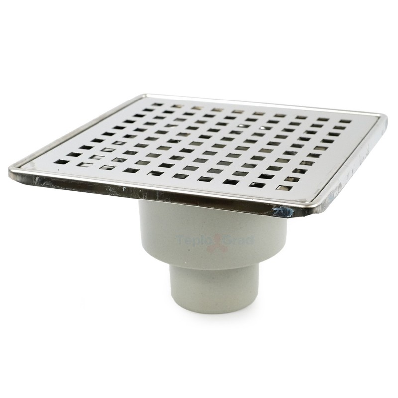 Трап вертикальный Valfex 150x150 с решеткой и окантовкой из нержавеющей стали и сухой затвор.