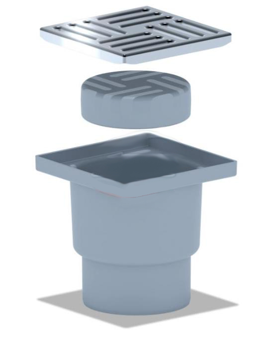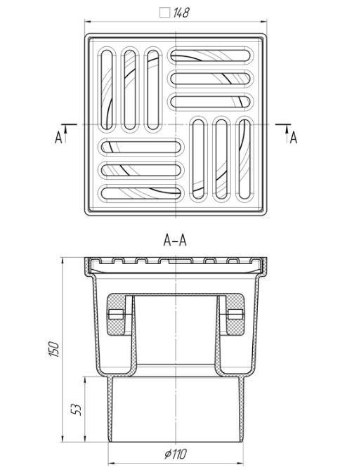 Трап АНИ верт.вып. 150х150/110 нерегул. с нерж.реш. ТQ1212 (сухой затвор) вертикальный, нерегулируемый с выпуском 110мм, с нержавеющей решеткой 150х150. Трап с сухим затвором. Конструкция не пропускает в сливную канализацию загрязняющие частицы, предотвращает засоры и легко чистится.