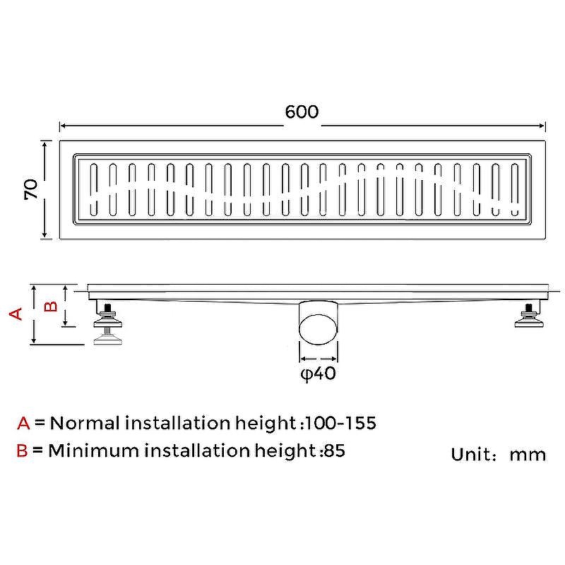Высота лотка: 15,5 Душевой лоток Gappo G86007-36 с Черной матовой решеткой см.