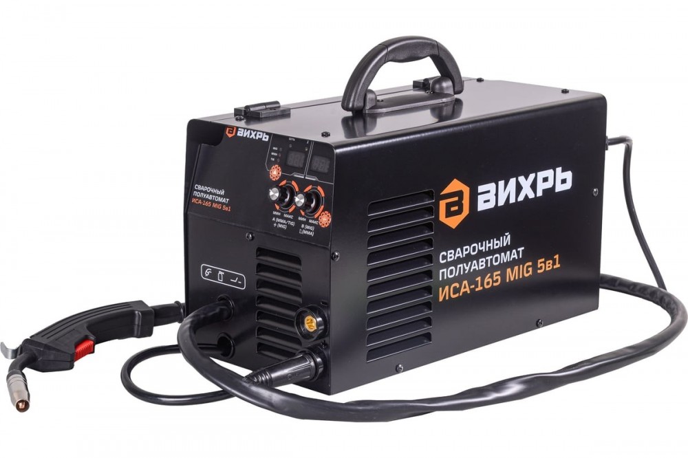 • Полуавтоматическая сварка постоянным током, проволокой в среде защитного газа углеродистых и нержавеющих сталей (режим MIG/MAG). Сварка осуществляется постоянным током в среде инертных (MIG) или активных (MAG) защитных газах. Отличительной особенностью рассматриваемого вида сварки являются два главных компонента: подвижный плавящийся электрод(проволока) и защитный газ. Защита электрической дуги необходима с целью препятствования вступления расплавляемого металла в контакт с окружающей средой, поскольку данное взаимодействие (при окислении азота и кислорода) приводит к образованию оксидов и нитритов, наличие которых в металле приводит к дефектам сварного шва. С этой целью и применяются защитные газы в баллонах: аргон, гелий, углекислота или их смеси.
