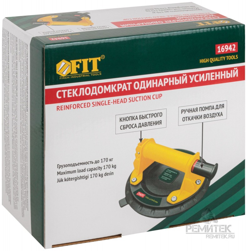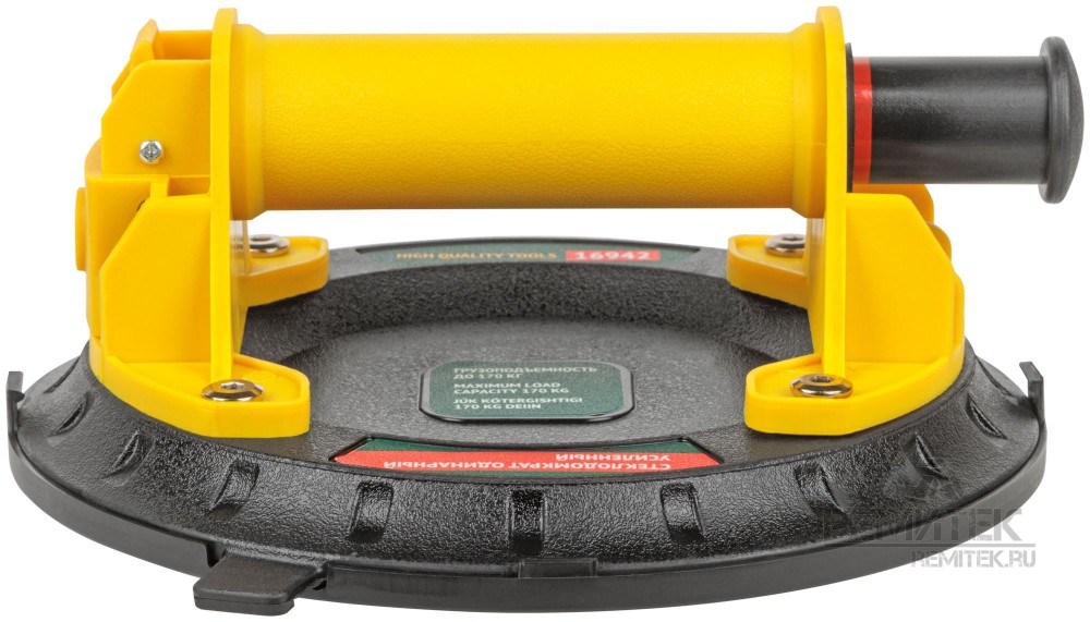 Профи. Усиленный. С ручной помпой для откачки воздуха и кнопкой быстрого сброса давления. Для переноски и монтажа стекол, глазурованной кафельной плитки и пластика. Для гладких поверхностей. Перед применением поверхность поднимаемого изделия должна быть обезжиренной, чистой и сухой. Максимальная грузоподъемность 170 кг. Рабочая температура от +10 °С до +35 °С. Материал: корпус из усиленного нейлона, резиновая подошва, пластиковая защитная крышка. Упаковка: картонная коробка.