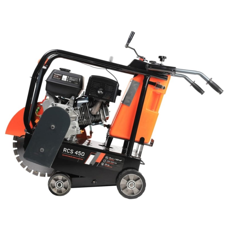 PATRIOT RCS 450 - это усовершенствованная модель с утолщенной рамой, максимальная глубина реза которой достигает 200 мм. Могут устанавливаться диски диаметром от 350 до 500 мм. Имеет высокую мобильность, даже при работе в местах с затруднённым доступом, а также удобен в управлении.