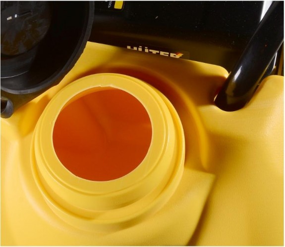 Размеры стальной опорной плиты составляют 580х500 мм. Для обработки тротуарной плитки предусмотрен полиуретановый демпфирующий коврик. Конструкция оснащена баком для воды объемом 13,3 л. Он обеспечивает систему смачивания при работе с горячим асфальтом. Орошение водой области между опорной плитой и асфальтом предотвращает налипание крошки. Уровень шума составляет 105 дБ.